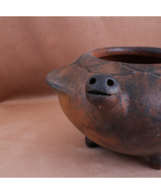 Esta peculiar pieza de alfarería, hecho a mano por artesanos de la reconocida comunidad de Cocucho, Michoacán, es muestra de la innovación de sus diseños